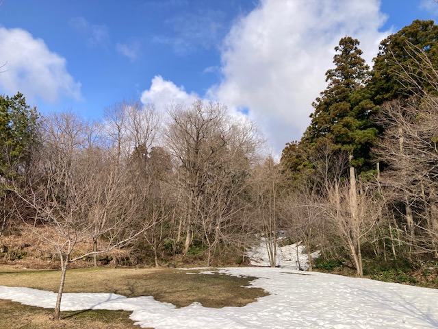 隣の「夢の森」を歩いてきた。 まだ林の中に雪が残り、雑木の枝先が少し赤くなっていた。 早く温かくならないかな・・・・