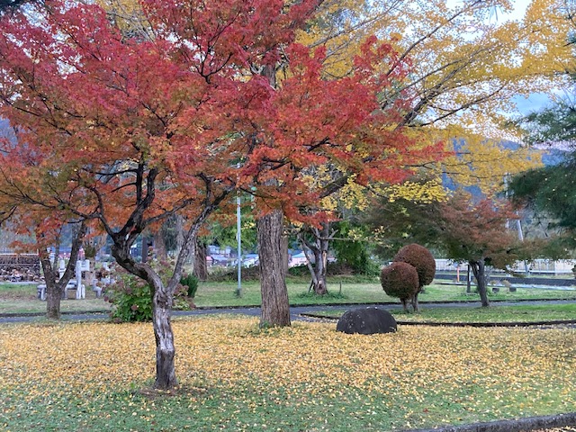 青い苔に散らばった、赤や黄の落葉が何とも言えず味があるのだけれど、、、失敗だったね、と。